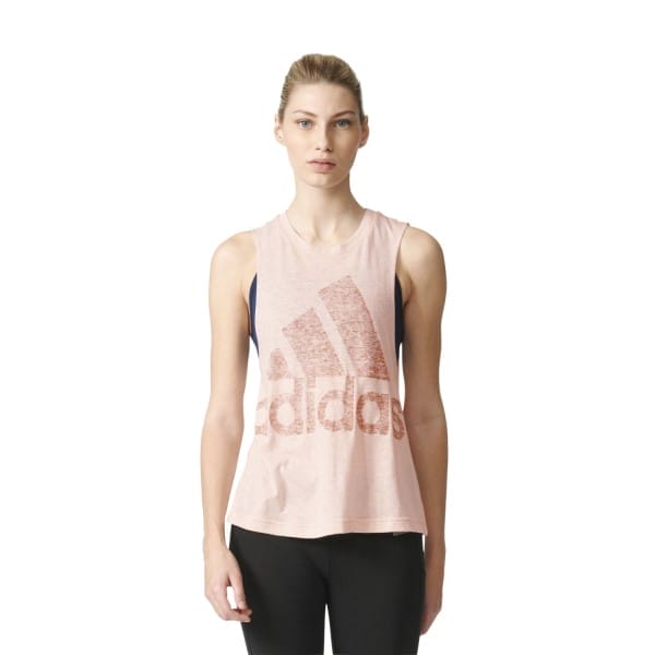 Fitness Mania – Adidas Logo Womens Sleeveless Training T-Shirt – Vapour Pink/Raw Pink The Adidas Logo women?s sleeveless training tank top is made to move with you. It has a flattering feminine cut that?s perfect for layering over your favourite sports bra. The Adidas logo is printed on the inside for a stylish look and sporty vibe. This comfy crew neck top is sleeveless for freedom of motion. – Melange fabric – Regular fit