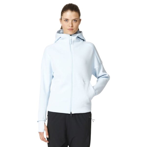 Fitness Mania – Adidas ZNE Womens Training Hoodie – Ice Blue The Adidas ZNE women?s training hoodie is an essential in your fitness wardrobe for chilly weather. The luxurious Z.N.E collection is designed for maximum comfort with streetwise style, so you can catch up with your bestie and hit the gym without having to switch up your look. This is your go-to hoodie for protection when the cold weather hits, featuring thick doubleknit fabric for excellent coverage. – Perfect jacket for transitioning from your favourite cafe or chill out session to the gy