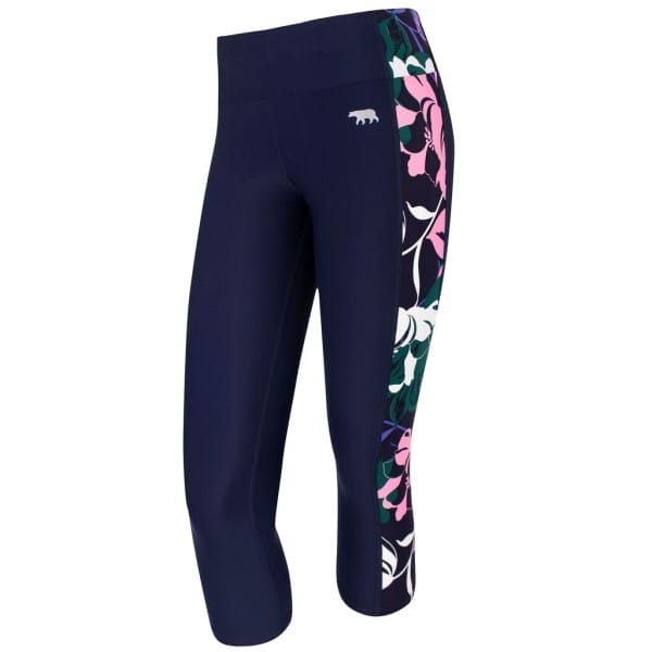 Fitness Mania – Running Bare Tummy Toned Womens 7/8 Training Tights – Indigo/Madison The Running Bare Tummy Toned women?s 7/8 training tights are a favourite for running, gym and studio workouts. Inject your fitness wardrobe with a pop of colour from the Hawaiian-inspired splice print detail. Sculpting to your body like a second skin, premium Runway fabric is breathable and gives you the flexibility to workout, stretch, bend and pose. The high rise waistband hugs your figure perfectly and features an adjustable drawcord and waistband pocket. You?ll love sweating it up wit