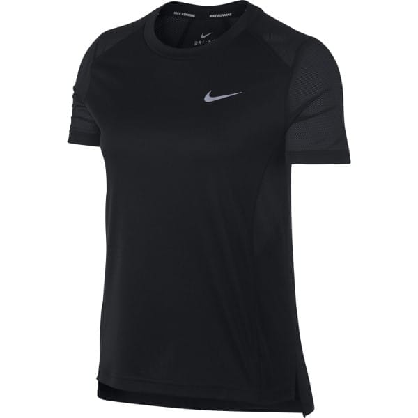 Fitness Mania – Nike Dry Miler Womens Short Sleeve Running Top – Black The Nike Dry Miler women?s short sleeve running top saves you crucial seconds choosing a running tee for your workout with its smart and simple design for tackling any distance. This classic running top is ultra-soft and features Dri-Fit technology to wick sweat away to the outer layer of the fabric for fast evaporation. Mesh panels boost air flow, preventing heat from become trapped against your skin. Reflective elements keep you noticed on your night runs and ergonomic seams ensure full f