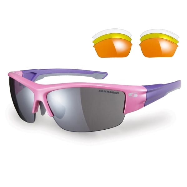 Fitness Mania – Sunwise Evenlode Sports Sunglasses – Pink The Evenlode Sports Sunglasses are part of Sunwise’s Sports and Outdoor Interchangeable Lenses Range. Available in white with orange and yellow features, black, pink with purple or blue with white and red features, frame options to suit your taste. These sports glasses come with a pack of four interchangeable polycarbonate high definition, lightweight and shatter proof lenses in the following colours: – Clear – Yellow – Orange – Smoke mirror (dark colour lenses) The lightweight versatile h