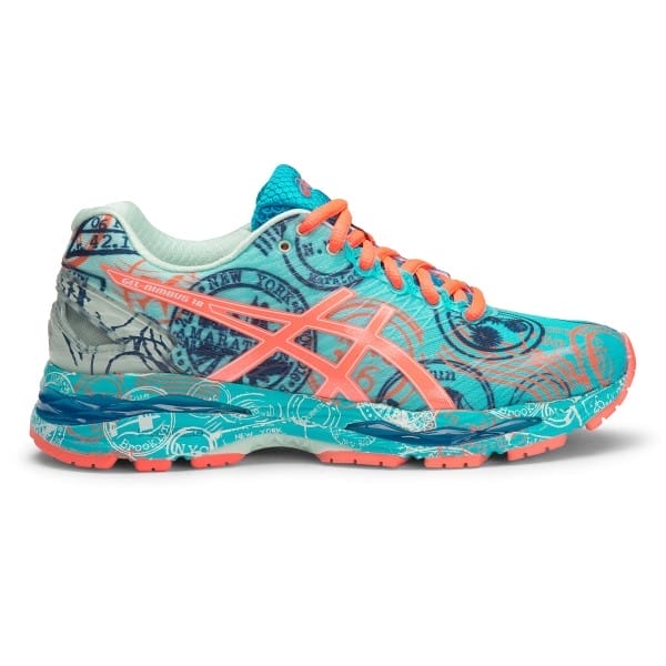 Fitness Mania – Asics Gel Nimbus 18 NYC Limited Edition – Womens Running Shoes – New York All eyes in the pack will be on your hot new kicks with the Asics Gel Nimbus 18 NYC Limited Edition women?s running shoes, featuring a fresh and energetic look inspired by the New York City marathon. They’re the perfect match for rigid foot types with a natural running style, delivering plush comfort and a cushioned ride. It features an innovative engineered/jacquard mesh upper with minimal material overlays and seams for enhanced fit and comfort. The Ortholite Lasting and Fluid Ride midsol