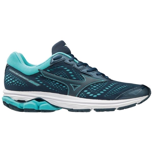Fitness Mania – Mizuno Wave Rider 22 – Womens Running Shoes – Blue Wing Teal/Hibiscus The Mizuno Wave Rider 22 women?s running shoes live up to the reputation of its iconic running family and raises the bar yet again to give you a lighter, softer and springier ride to propel your run forward. In the previous model, the engineered mesh was isolated to the forefoot area but by extending it with the addition of a full-length engineered mesh upper, Mizuno have enhanced the breathability, adaptive fit and pillowy-soft comfort. The sculpted midsole and innovative Cloudwave technolo