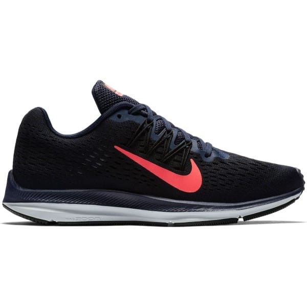 Fitness Mania – Nike Zoom Winflo 5 – Womens Running Shoes – Blackened Blue/Flash Crimson/Black The Nike Zoom Winflo 5 women?s running shoes let you flow through your sweat session like you’re running on air, featuring an engineered mesh upper for breathable comfort and sock-like fit for a natural feel. This lightweight and supportive design locks your foot securely in place with a Dynamic Fit system that puts Flywire cables into action. Don’t let sore feet squash your good running vibes. Nike have you covered with the Nike Zoom Air unit and Cushlon Crash Rail for cushioned comfort, res