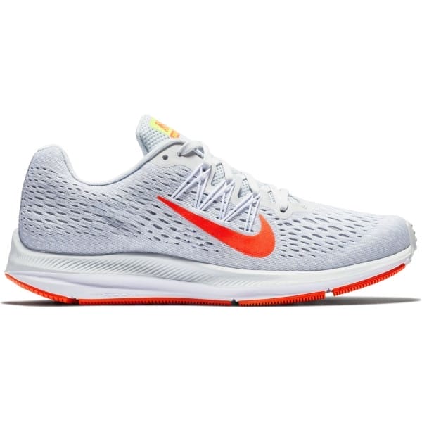 Fitness Mania – Nike Zoom Winflo 5 – Womens Running Shoes – Pure Platinum/Bright Crimson The Nike Zoom Winflo 5 women?s running shoes let you flow through your sweat session like you’re running on air, featuring an engineered mesh upper for breathable comfort and sock-like fit for a natural feel. This lightweight and supportive design locks your foot securely in place with a Dynamic Fit system that puts Flywire cables into action. Don’t let sore feet squash your good running vibes. Nike have you covered with the Nike Zoom Air unit and Cushlon Crash Rail for cushioned comfort, res