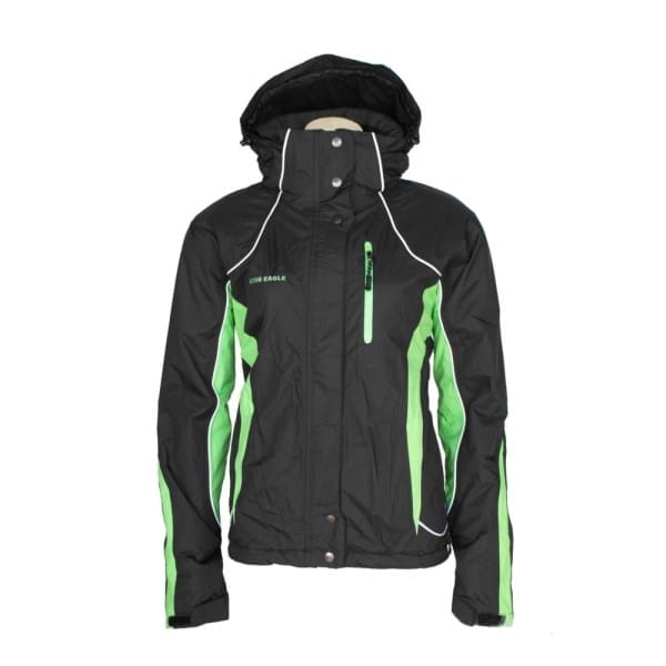 Fitness Mania – King Eagle Confess Womens Ski Jacket – Black/Green Stay warm and comfortable on your next ski trip with the European brand King Eagle “Confess” women’s ski jacket. Be in constant comfort with its advanced rip stop outer material (5000mm+5000g/m/24h) extra durability, along with full seam sealing, providing you with a totally dry experience so you can take on a variety of harsh weather conditions. Its unique insulation weight gives the wearer total protection from sub temperatures. A detailed cut and design with all quality trims, delivers