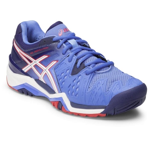 Fitness Mania – Asics Gel Resolution 6 – Womens Tennis Shoes – Powder Blue/White/Hibiscus With a brilliant look and comfort this good you?ll want to wear the Asics Gel Resolution 6 women?s tennis shoes on and off the court, featuring Personal Heel Fit (PHF) technology for amazing security and feel. Nobody wants sore feet affecting their performance? no probs! These tennis shoes feature a Solyte midsole for cushioned comfort and rearfoot Gel units to minimise stress to your soft tissues and for smooth motion. You get incredible durability from the Asics High Abrasion Resistant (A