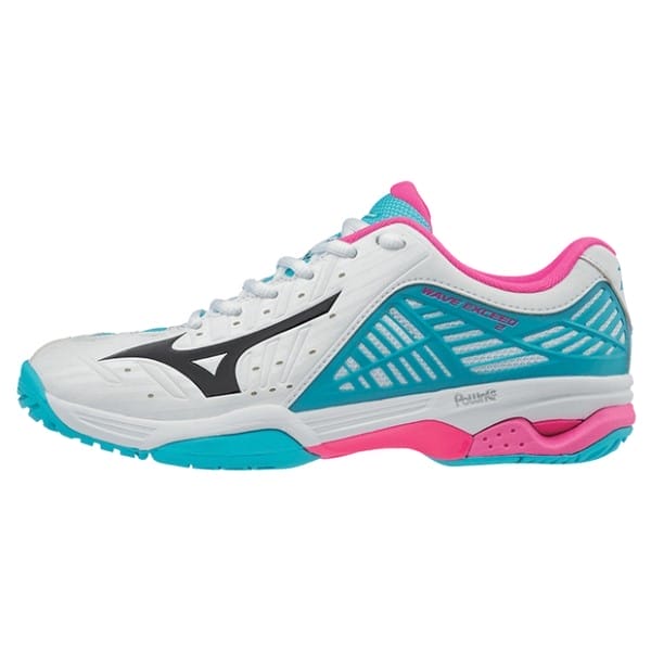 Fitness Mania – Mizuno Wave Exceed 2 AC Womens Tennis Shoes – White/Aqua/Pink The Mizuno Wave Exceed 2 women?s tennis shoes provide a natural fit with a lightweight upper built to tackle the toughest sweat sesh on the court. The PoWnCe midsole delivers responsive cushioning in a fast and lightweight package. Energise your ride with D-Flex Groove technology for powerful acceleration and swift motion. The durable outsole provides grip on all court surfaces. – Fast, high performance tennis shoe – Lightweight and durable upper for natural fit – Removable moulded sockli