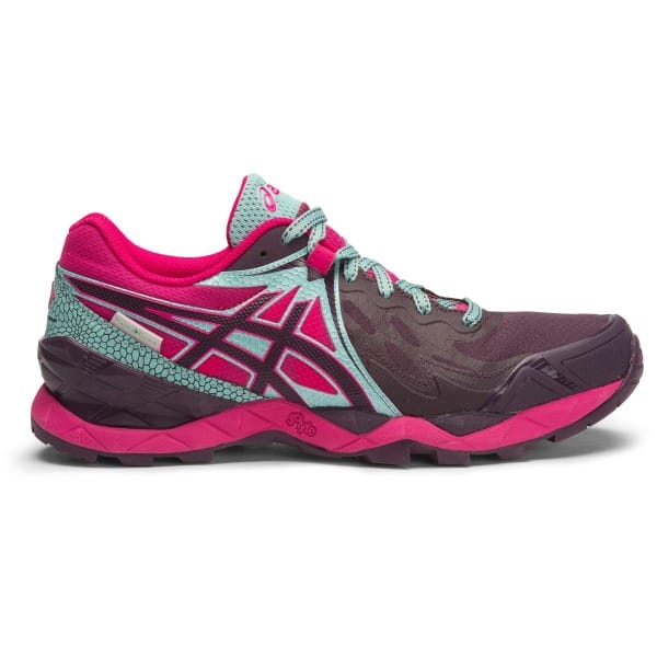Fitness Mania – Asics Gel Fuji Endurance Plasmashield – Womens Trail Running Shoes – Eggplant/Sport Pink/Aqua Haze The Asics Gel Fuji Endurance Plasmashield women?s trail running shoes are a must-have this season for runners with neutral foot types that love to take their fitness off road. Lace pockets let you stash your laces easily out of the way for zero distractions and to prevent any trips. The 3M reflective elements ensure you stay visible in low light conditions and you?ll love standing out in style as you hit the trails. The Plasma Shield is a new, innovative technology that amplifies the water