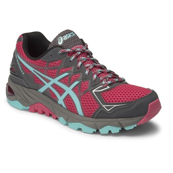 Fitness Mania – Asics Gel Fuji Trabuco 4 – Womens Trail Running Shoes – Azalea/Turquoise/Black The Asics Gel Fuji Trabuco 4 women?s trail running shoes are perfect for escaping the urban jungle and getting into nature. Designed for overpronators, these trail shoes feature a new lightweight upper with minimal overlays, which is great if you need to be quick on your feet when chased by wild koalas or whatever! The durability and cushioning gives you a unique experience beyond the pavement, and the traction is unbeatable for taking on tricky terrain with the full ground contact studded out