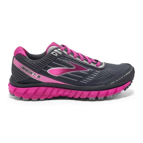 Fitness Mania – Brooks Ghost GTX 9 – Womens Trail Running Shoes – Festival Fuchsia/Silver The Brooks Ghost GTX 9 women?s trail running shoes are perfect for skipping the gym and tackling nature in all conditions. Stormy weather should never stop you from enjoying the outdoors and with the waterproof GORE-TEX membrane these machines have you covered. They keep your feet dry and comfortable even when it’s wet and muddy underfoot. You get adaptive cushioning and lively responsiveness from the BioMoGo DNA and the Caterpillar Crash Pad, ensuring a smooth and efficient run for the lon