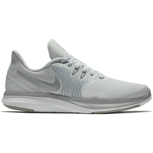 Fitness Mania – Nike In-Season TR 8 – Womens Training Shoes – Pure Platinum/Wolf Grey The Nike In-Season TR 8 women?s training shoes make an impact at the gym with eye-catching details. The smooth mesh upper boosts the comfort of your workout and creates a ride that?s as tough as you are. It?s your secret weapon for cardio workouts and circuit training, holding your midfoot securely and allowing you to move in comfort with the dual-density cushioning. Rubber pods reinforce the outsole where you need it most to tackle your intense workouts. Forefoot flex grooves let you move